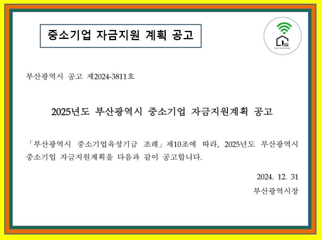 「부산광역시 중소기업육성기금 조례」제10조에 따라, 2025년도 부산광역시 중소기업 자금지원계획을 다음과 같이 공고합니다.