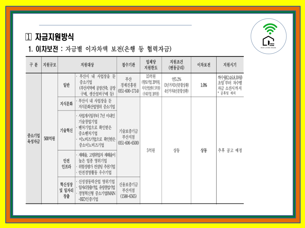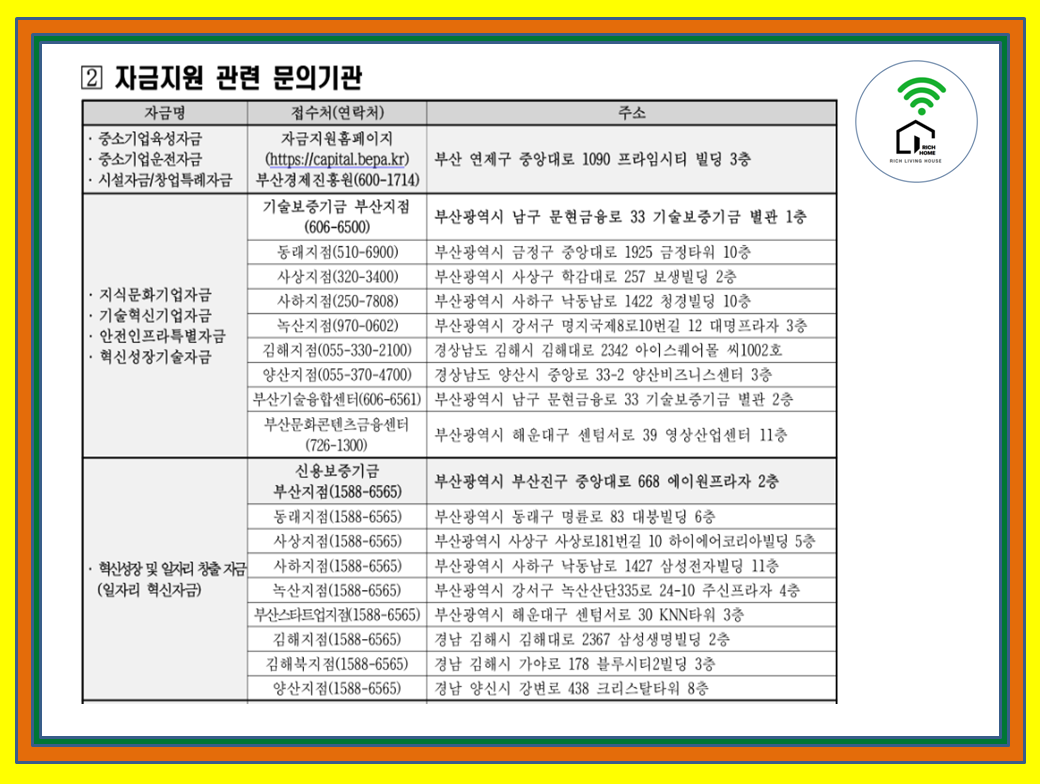 부산경제진흥원 051-600-1714 및 자금별 문의처 공고문 참조
