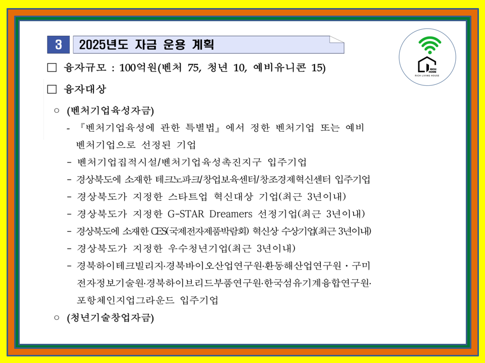 | 금융[경북] 2025년 벤처기업 육성자금 운용계획 공고 (0) | 2025.01.09 |