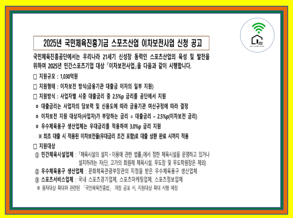 금융2025년 국민체육진흥기금 스포츠산업 이차보전사업 신청 공고