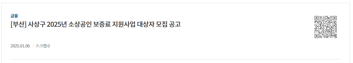 지원사업 공고 금융[부산] 사상구 2025년 소상공인 보증료 지원사업 대상자 모집 공고